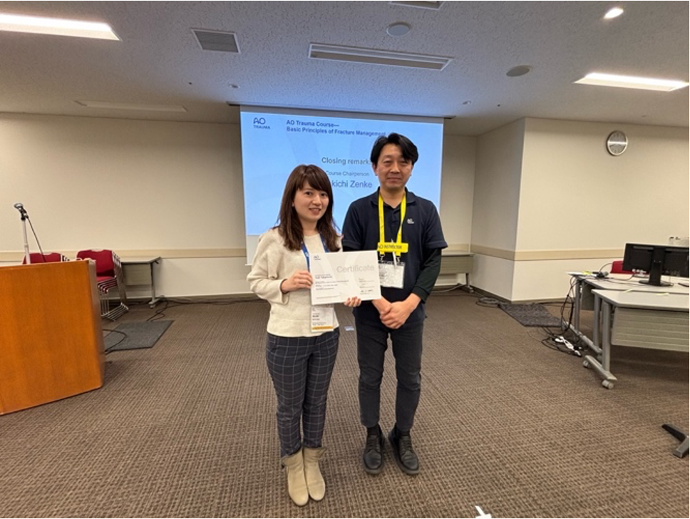 最後になりましたが、Chairperson 産業医科大学の善家先生をはじめ、AO TraumaのFacultyおよびTable instructorの先生方、九大救命外傷チームの尊敬するリーダーであり、今回はFacultyとしてご指導いただいた九州大学病院の籾井先生、そして数日間の不在にも関わらず快く東京に送り出してくださった佐世保共済病院整形外科の皆様に、心より感謝申し上げます。
