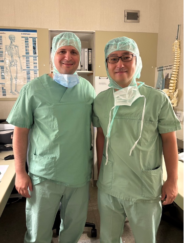 私は主に難治骨折手術、手外科手術の助手に入らせてもらい、手術を中心に研修をしました。開放骨折、骨盤輪骨折、寛骨臼骨折、他院の手術後の合併症などの興味のある症例の手術に入りました。手外科疾患では陳旧性屈筋腱断裂、SLAC損傷、拘縮手術などを経験しました。自分の拙い英語でも、丁寧な指導をしていただき、大変勉強になりました。ドイツでは日本で未導入なインプラントや手術道具を多く使用されており、手術の選択肢自体は日本より多い印象で興味深かったです。また、ドイツの患者は日本の患者と比べて肥満患者が多く、肥満患者に対する手術時の工夫が色々と行われており参考になりました。臨床以外にも、Bergita Ganse教授に同大学の研究室を紹介していただき、科で取り組まれている骨癒合促進に関する研究や新規インプラント作成に関する研究についてご指導をいただきました。
